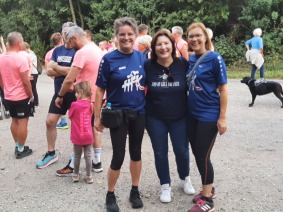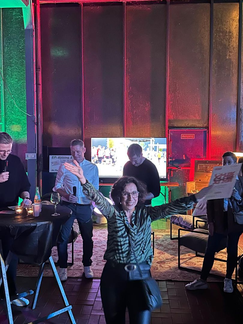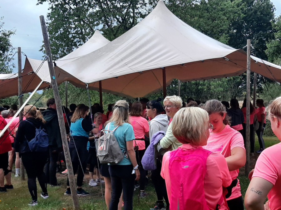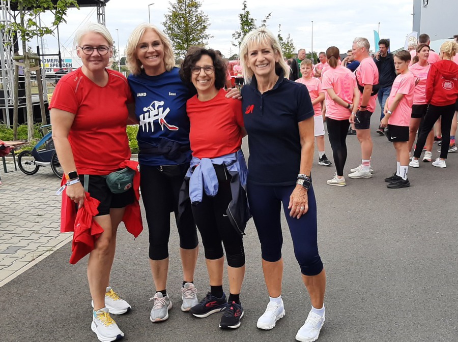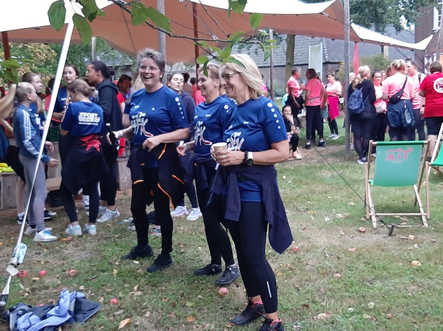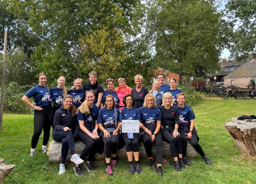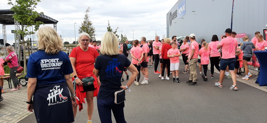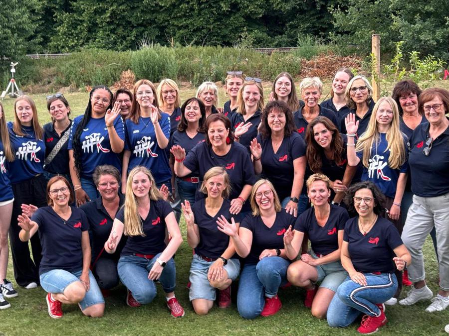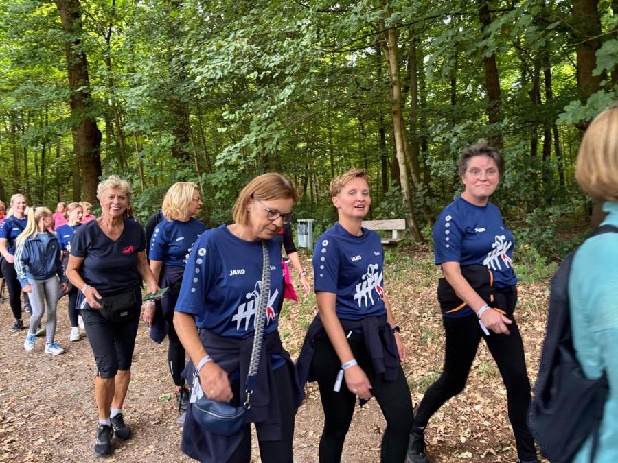 Das 3. Highlight der Woche war der Ladies-Walk am Mittwoch, 3.9., ab 18 Uhr am Schlösschen Borghees. Die Wettervorhersagen waren besorgniserregend, mit Sturm und Regenschauer. Aber es verschob sich alles weiter nach hinten, und über 200 Frauen fanden sich am Schlösschen ein, um gemeinsam den Spendenlauf zu starten. Das war Frauenpower pur.Zuerst überreichte unsere Gruppe einen Spendenscheck über 244,44, € an das Organisationsteam Danach durften wir mit dem Warm up beginnen. Patries hatte sich gut vorbereitet und heizte die Frauen mit einen Schlager-Hit-Mix kräftig ein. Als die Musik plötzlich ausfiel, sangen 200 Frauen textsicher weiter „ 1000 Träume weit…“. Dann ging es auch schon los, kreuz und quer 1 ½ Std. durch den Borgheeser Wald. Zum Schluss gab es am Schlösschen unter dem großen Zeltdach Sekt, Prosecco und Lillet. Genau richtig für so viele sportliche Frauen . Auch heute kam der angekündigte Regenschauer mit Gewitter zum Glück wieder nach der Veranstaltung.