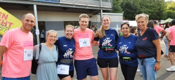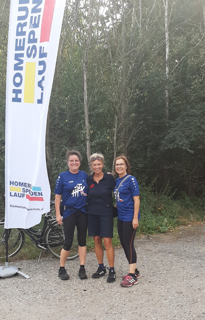 Der Startschuss für den Spendenlauf fiel am Mittwoch, den 27.8., um 18.00 Uhr unterhalb der Emmericher Rheinbrücke. Hier starteten über 100 Läufer und Läuferinnen für einen guten Zweck. Die meisten von ihnen kamen im pinken Home-run-Shirt. Uns vom HFK erkannte man an unseren Vereinshirts in blau. Sportbegeistert waren alle, und wir liefen gemeinsam über die Rheinbrücke zur anderen Rheinseite, wo ein Getränkewagen auf die Läufer wartete. Danach ging es auch schon wieder zurück auf die Emmericher Rheinseite. Der Anfang war gemacht. Jeder Teilnehmer konnte jetzt eifrig km sammeln und am Abend eintragen.