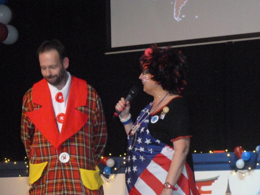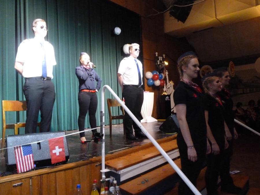 Mit dem superlangen Tanz, den die Garde extra für die Frauen abgewandelt hatte, kam ihr Programm zum Ende. Aber das Paar hatte doch noch ein Geschenk zu erwarten, schließlich sollte der Prinz ja auch noch eine Aufgabe lösen. Er musste dann mit Korken im Mund drei Lieder singen, die der Saal aber schnell erkannte. Margit hielt die Aufgabe für zu leicht, aber wenn man sie auch so einem musikalischen Allroundtalent „mit Jazz und Swing“ stellt…… und es war ja auch für einen guten Zweck.